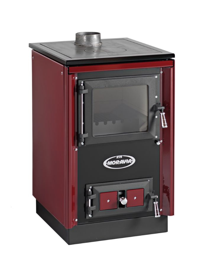 KVS MORAVIA 9114-HEU to wszechstronna kuchnia na drewno z funkcją centralnego ogrzewania – idealna dla mniejszych domów i domków letniskowych, w których liczy się niezawodność, oszczędność i przyjemność gotowania na naturalnym ogniu.